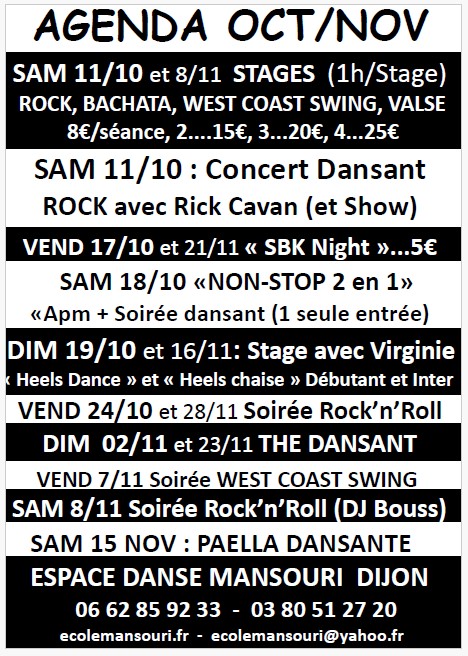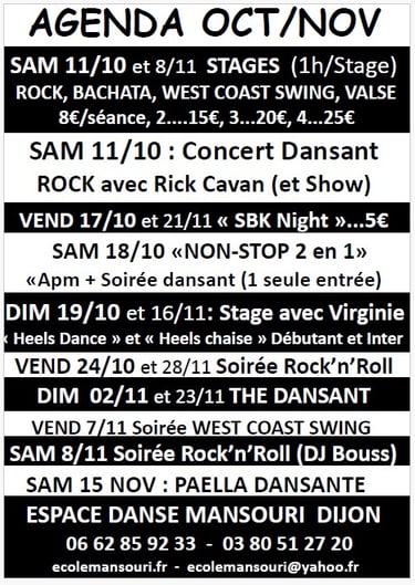 🔷 Soirées West Coast Swing les 1er vendredi, 21h30/1h30...8€ (prochaine le 7/11)